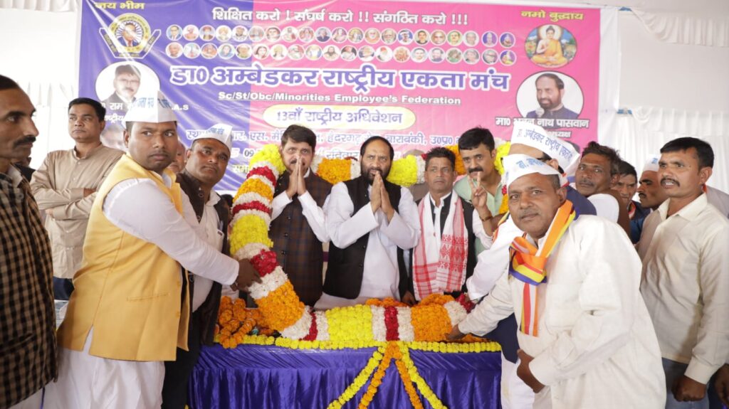 लखनऊ। डॉ. अम्बेडकर राष्ट्रीय एकता मंच के राष्ट्रीय अध्यक्ष भवननाथ पासवान ने कहा कि इस देश में जबतक दलितों, पिछड़ा वर्ग और अल्पसंख्यक समाज को उनका संवैधानिक अधिकार नहीं मिल जाता तब तक वे अपना आंदोलन जारी रखेंगे। उन्होंने बताया कि नौ नवंबर को बाराबंकी में हुए संगठन के राष्ट्रीय अधिवेशन में निर्णय लिया गया कि देश में और खासतौर पर उत्तर प्रदेश में लगातार दलित उत्पीडऩ की घटनाएं बढ़ रहीं हैं।
