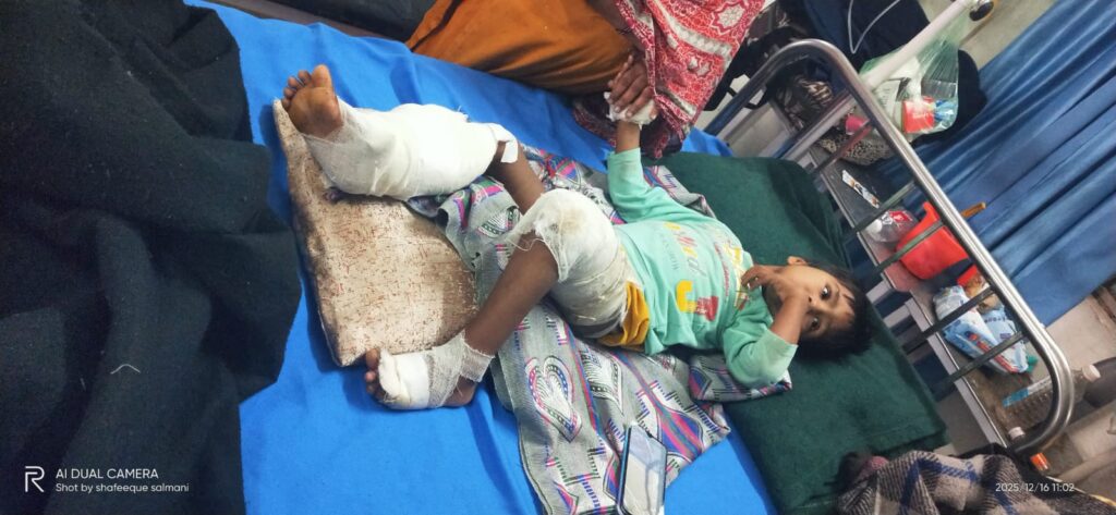 लखनऊ। बसंतकुज इलाके में लगभग बीस दिन पहले सात साल का बच्चा सडक़ हादसे में बुरी तरह से जख्मी हो गया। इस बच्चे का नाम हसनैन है और इसके पिता राजू सब्जी का ठेला लगाकर परिवार का गुजर बसर करते हैं। सड़क की सफाई करने वाले एलएसए के ट्रक से हुई इस दुर्घटना में बच्चे का एक पैर तो बुरी तरह से जख्मी हो गया और उसका एक पैर काटने की नौबत आ गई। तभी सामाजिक संस्था वे टू सक्सेज फाउंडेशन ने इस बच्चे की मदद के लिए आगे बढक़र लोगों से मदद की गुहार लगाई। ताकि पैसे के अभाव में इस बच्चे का बचपन छिनने से बचाया जा सके।